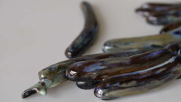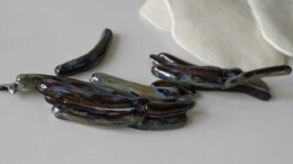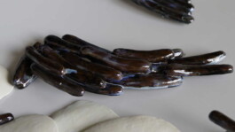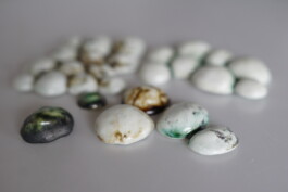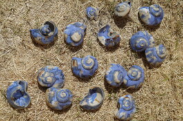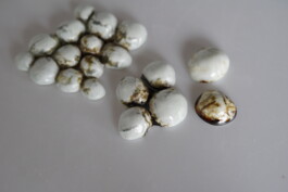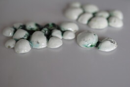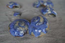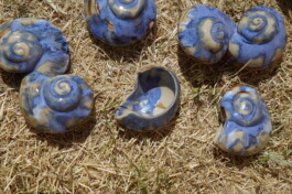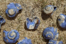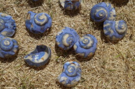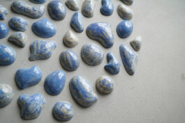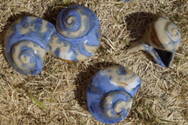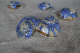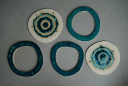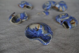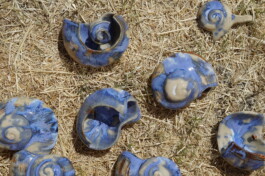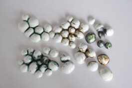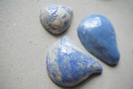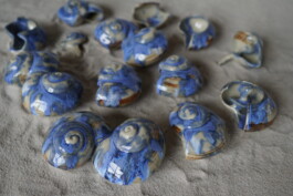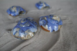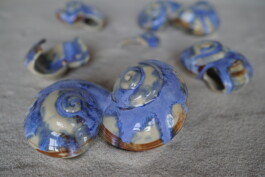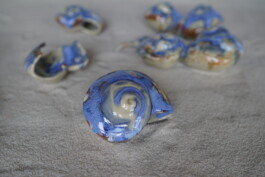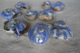 porcelain hanging objects with crystalline glazes,