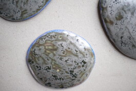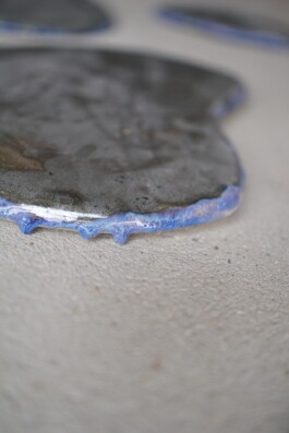 ‘The oil slicks’, hand - painted, glazed ceramic objects, 2020